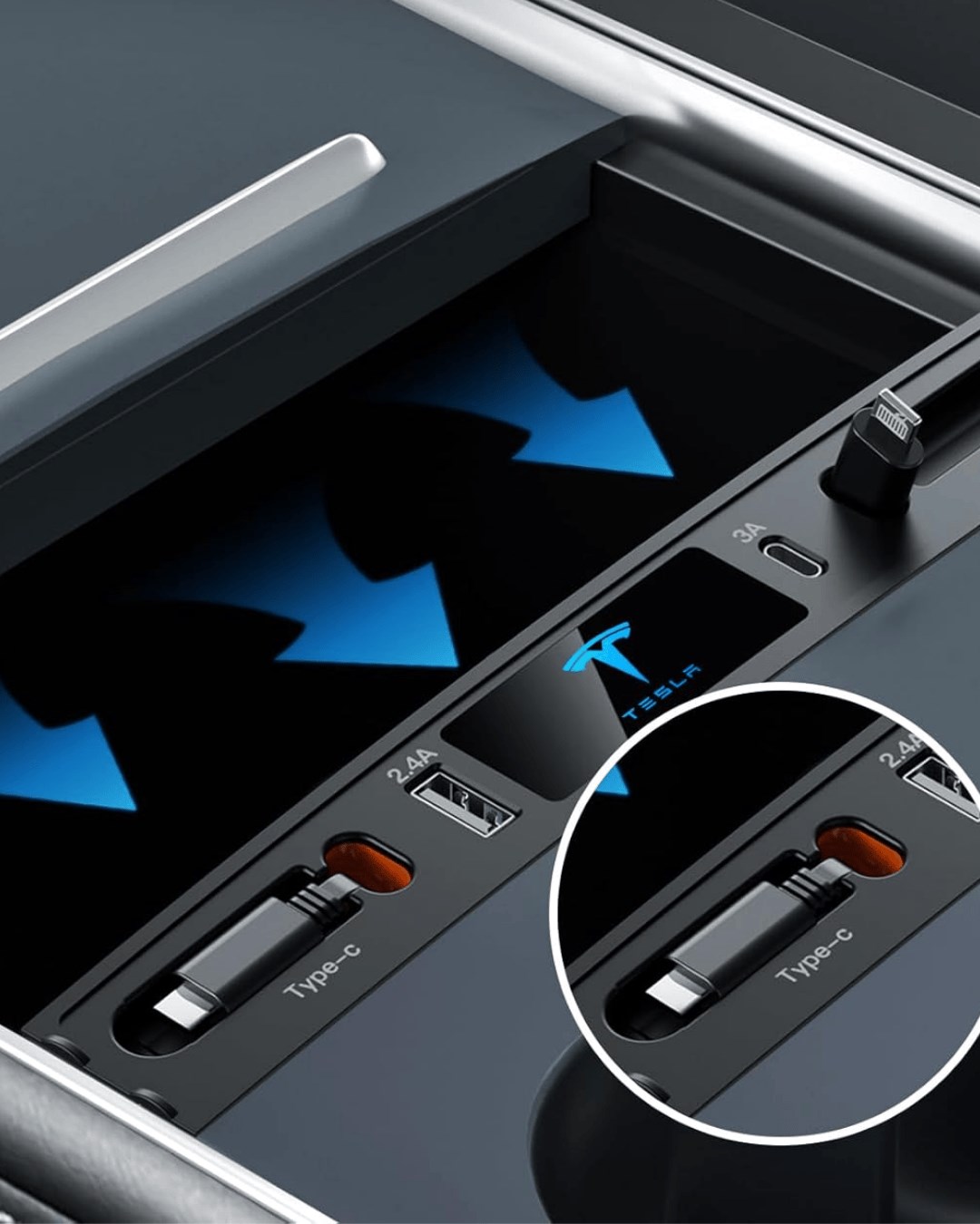 Bu ürün, Tesla Model Y ve Tesla Model 3 orta konsol USB girişleri için tasarlanmış teleskopik şarj adaptörüdür. Araç içi USB bağlantı noktasını daha pratik şekilde kullanmaya yardımcı olur.